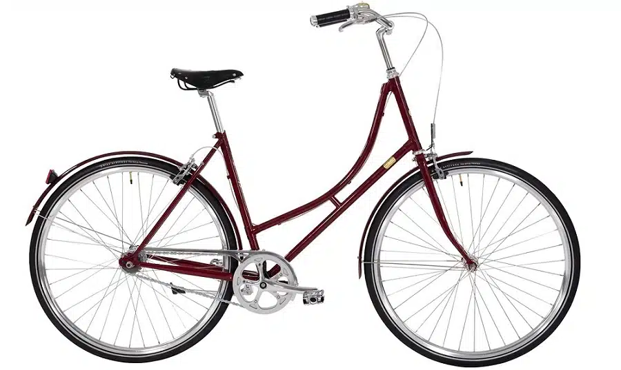 Bike by Gubi 3 Lady bordeaux letvægts. er ægte designercykler. Designeren Gubi Olsen har skabt Bike by Gubi som visuelt lette, enkle og stilrene stålcykler. Klare farver samt greb og sadel i læder fra Brooks understreger den klassiske arv i en Bike by Gubi. Hvert eksemplar er unikt nummereret og håndbygget i Randers.